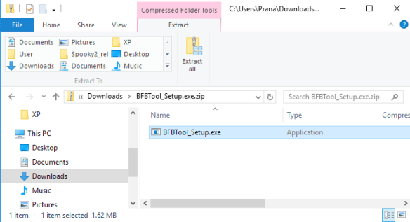 Haz doble clic en BFBTool_Setup.exe.zip para abrir el archivo ZIP de BFBTool. Luego, haz doble clic en BFBTool_Setup.exe para iniciar el instalador.