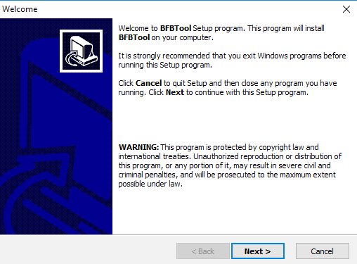 Esta ventana aparece al ejecutar BFBTool_Setup.exe.
