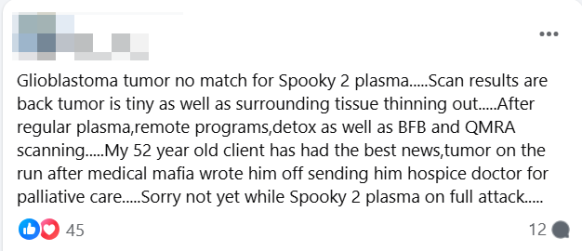 “El tumor de glioblastoma no es rival para Spooky2 Plasma…