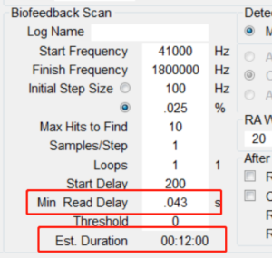 Para el GenX Pro, ajusta el Tiempo Mínimo de Lectura a un valor más pequeño que el predeterminado 0,07. Configurarlo en 0,043 te dará un escaneo de 12 minutos, 0,22 aproximadamente un escaneo de 7 minutos. Puedes configurarlo en 0 para un escaneo aún más rápido.