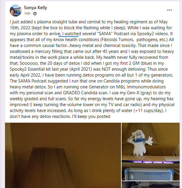 Acabo de añadir un tubo recto de plasma, que es fundamental en mi rutina de curación desde el 16 de mayo de 2022 (conservé la caja para evitar el parpadeo mientras duermo). Mientras esperaba mi pedido de plasma, vi varios videos del podcast “SAMA” de Spooky2. Parece que todas mis afecciones (fibromas, tumores, patógenos, etc.) tienen un factor causal común: metales pesados y toxicidad química.