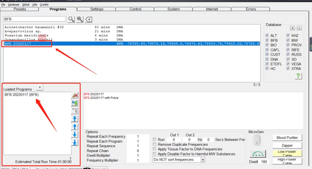 Después de un escaneo BFB con Scalar, simplemente transfiere la lista de frecuencias generada a tu configuración de Remote (a través de la pestaña “Programas” del software) para utilizarla en tratamientos remotos. No necesitas repetir el escaneo en otro modo. Esta flexibilidad te permite aprovechar los resultados del BFB Scalar en todas las aplicaciones de Spooky2. ¡Déjanos saber si necesitas ayuda con la configuración!